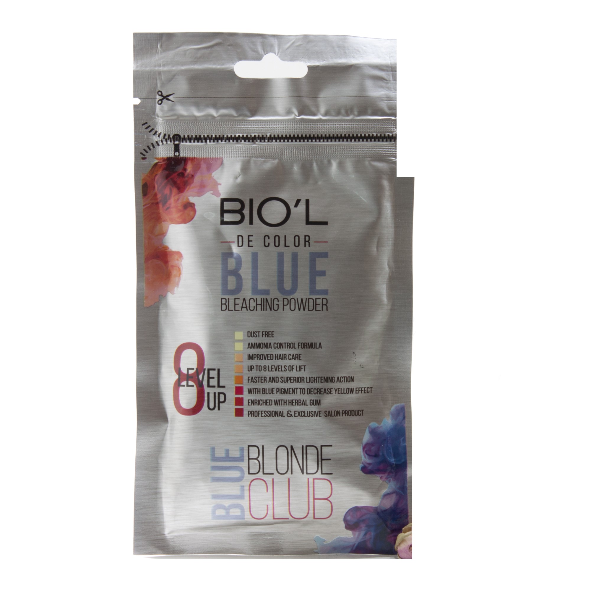 پودر دکلره آبی بیول ، با توجه به روش مصرف ارایه شده ،که داخل محفظه قرار دارد ، می تواند پایه رنگی تارهای مو را ، به میزان 7 تا 8 پایه روشن تر نماید .